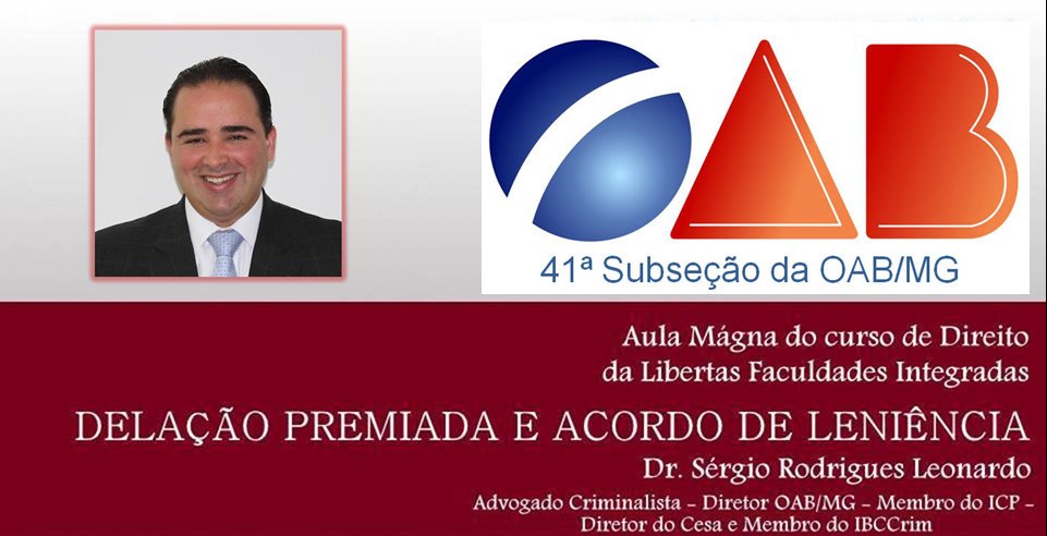 A 41ª Subseção, comissão da OAB/Jovem em parceria com a Faculdade Libertas promoveram no último dia 09/03 a aula Magna- Delação Premiada e Acordo de Leniência.